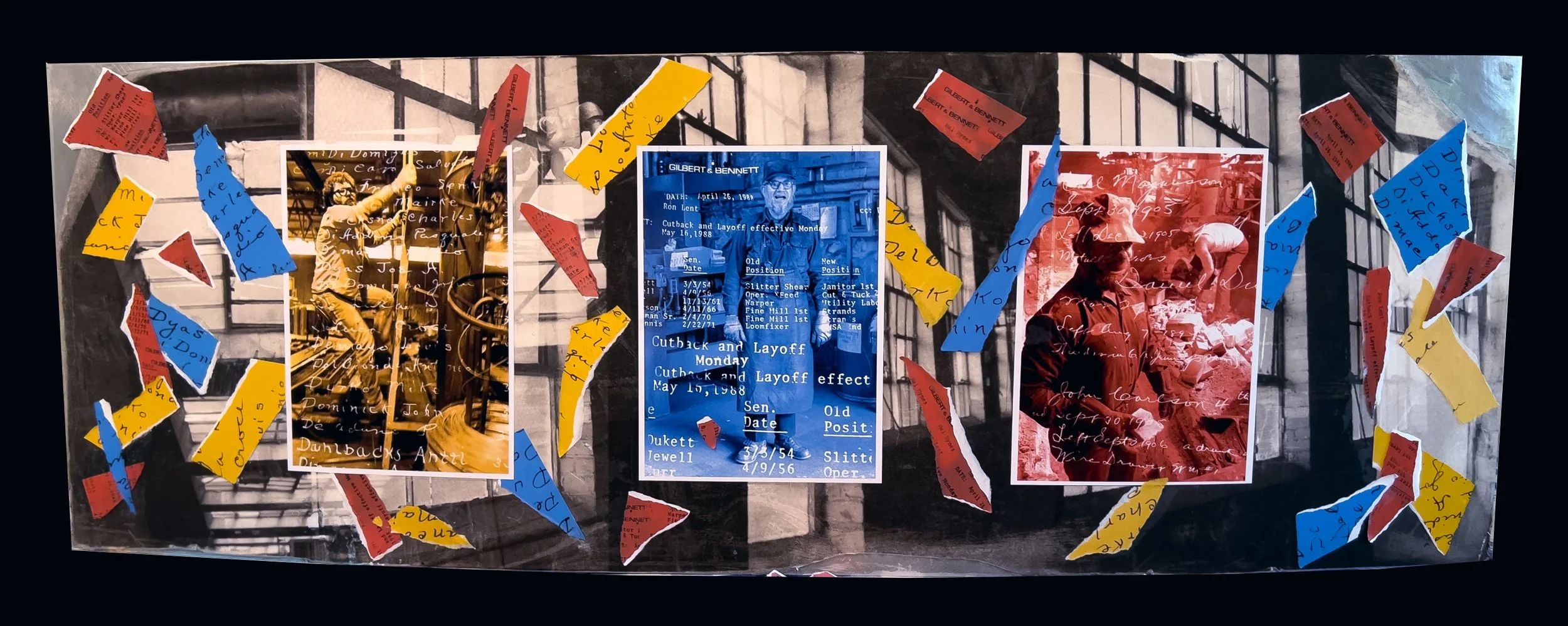 The Gilbert & Bennett Wire Mill once operated 24/7 in three 12-hour shifts. The color palette reflects the cycle of morning, evening, and night shifts — capturing the rhythm of continuous labor and the passage of time as the factory moved from peak production to decline.